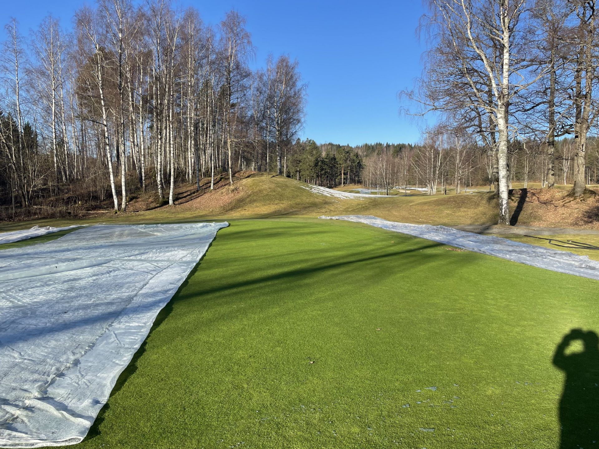 Denne uken har vi fjernet plasten fra greenene, og det ser veldig fint ut. Greenene har kommet seg veldig bra gjennom vinteren, som vi er glade for.