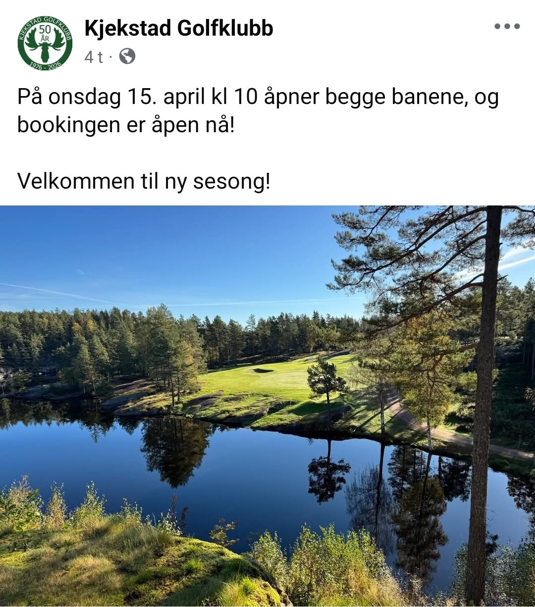 Onsdag 15. april kl 10.00 åpner Kjekstad golfklubb begge sine baner, og de av våre medlemmer som har tegnet fullt medlemskap vil ha mulighet til å booke allede fra i dag!